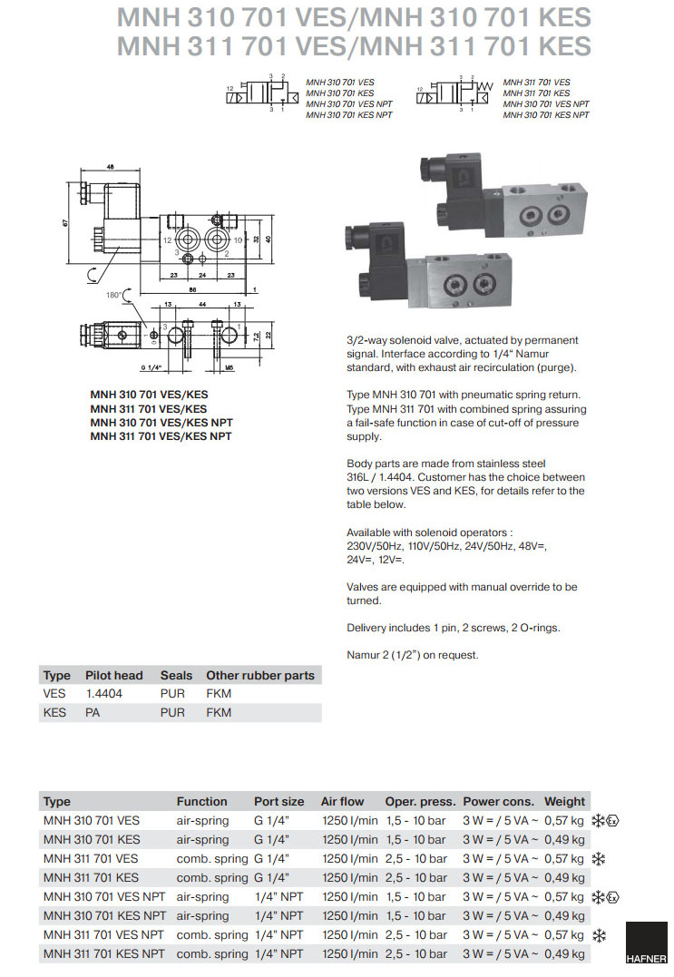 MNH310701VES,MNH310701KES,MNH311701VES,MNH311701KES,MNH311701KESNPT,MNH310701VESNPT,Hafner電磁閥