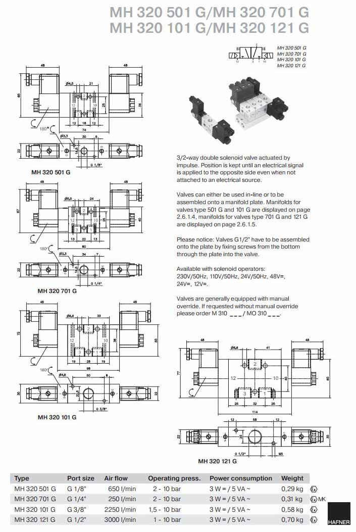 MH320501G,MH320701G,MH320101G,MH320121G,Hafner電磁閥