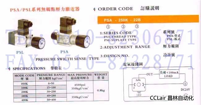 PSA-050K-22B,PSA-100K-22B,PSA-200K-22B,PSA-280K-22B,PSA-400K-22B,壓力繼電器,