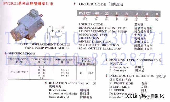 詳細信息 PV2R21-17,PV2R21-19,PV2R21-23,PV2R21-25,高壓變量葉片泵