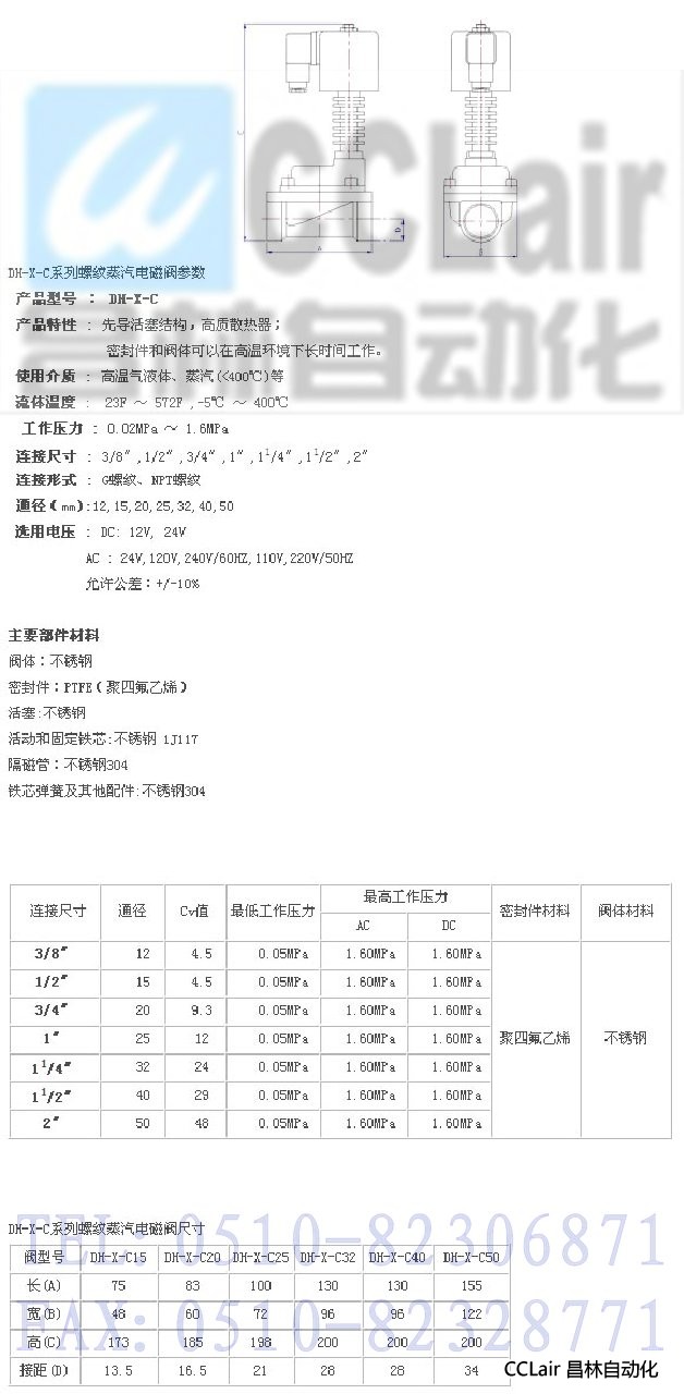 詳細信息 DH-X-C15,DH-X-C20,DH-X-C25,DH-X-C32,DH-X-C40,DH-X-C50,蒸汽電磁閥