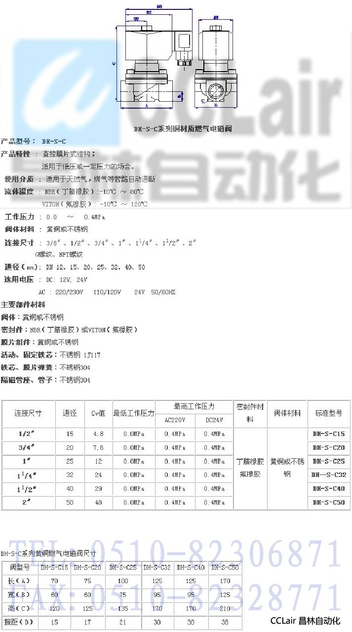 詳細(xì)信息 DH-S-C15,DH-S-C20,DH-S-C25,DH-S-C32,DH-S-C40,DH-S-C50,燃?xì)怆姶砰y