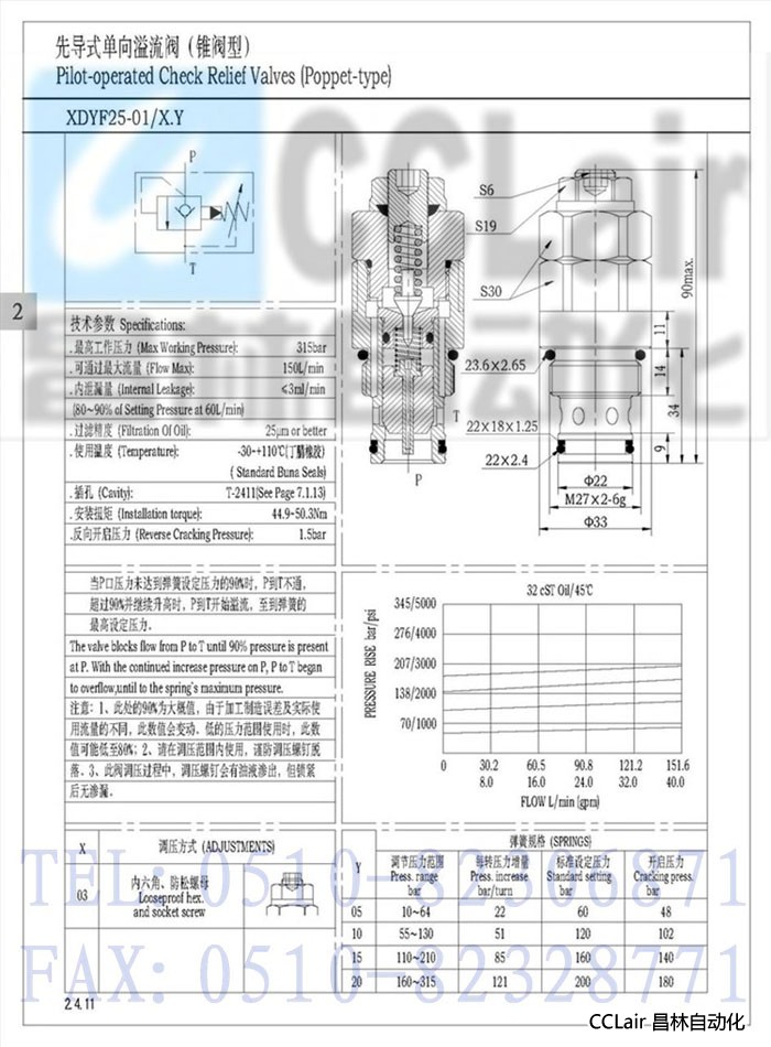 XDYF25-01,先導(dǎo)式單向溢流閥