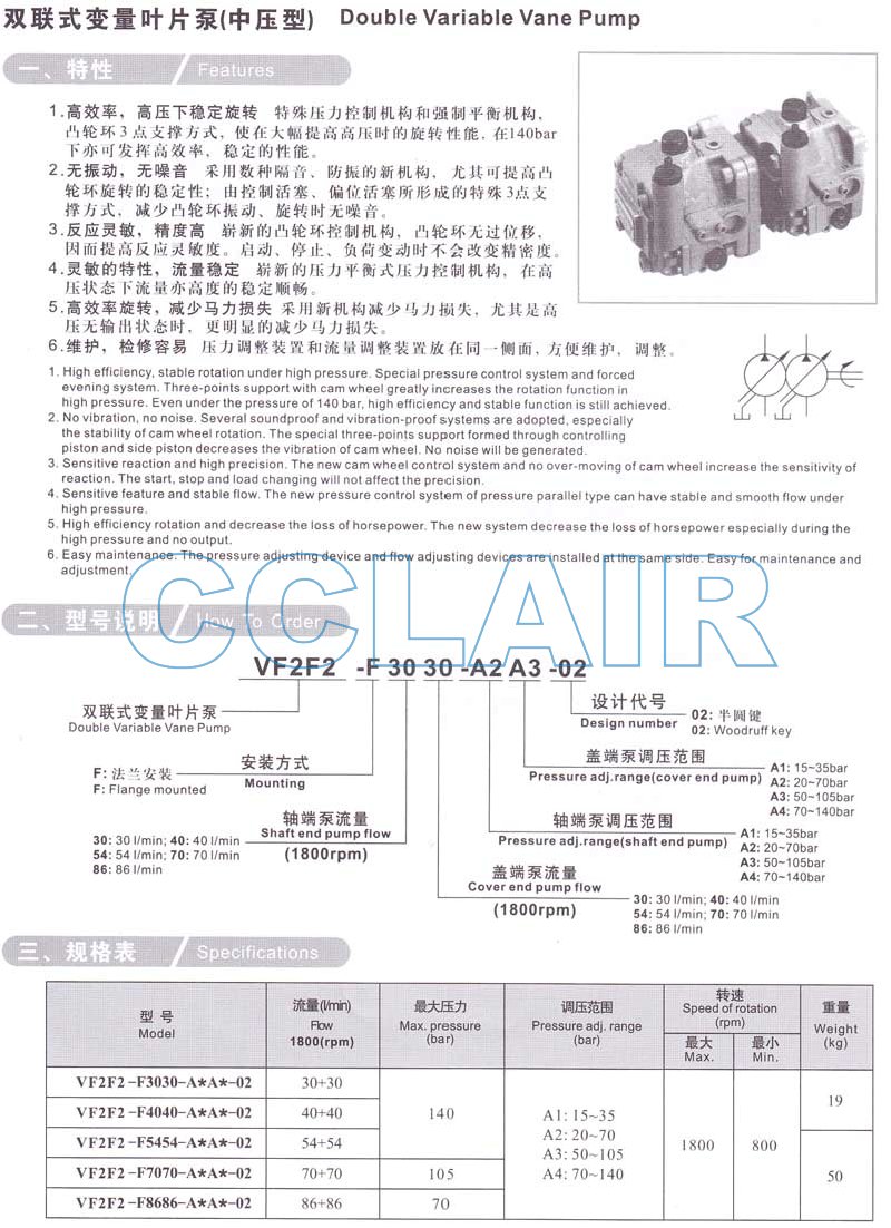 VF2F2-F3030,VF2F2-F4040,VF2F2-F5454,VF2F2-F7070,VF2F2-F8686,VF2F2-F3030-A2A1-02,中壓雙聯(lián)變量葉片泵