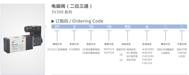 3V310-08-NC-A,3V310-08-NC-B,3V310-10-NO-C,3V320-08-NO-E,3V320-10-NO-F,二位三通電磁閥