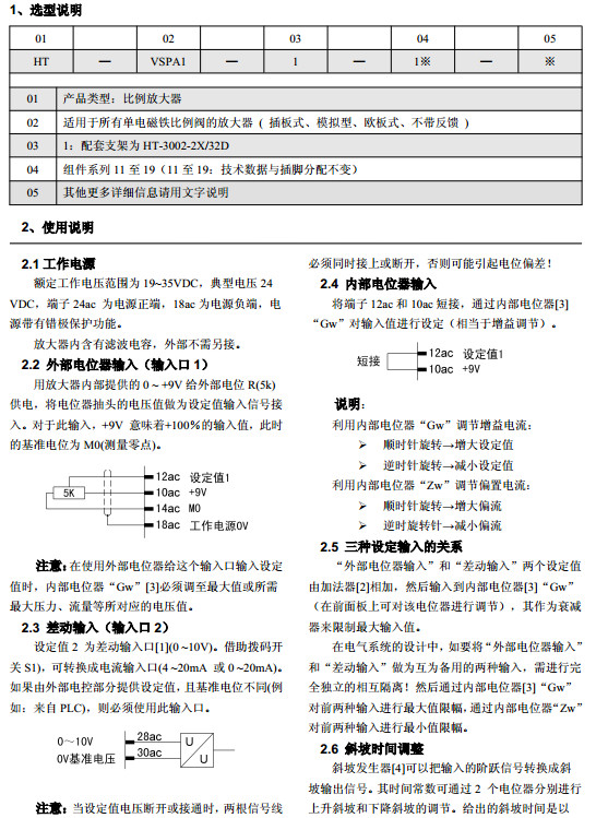 HT-VSPA1-1-11,HT-VSPA1-1-12,HT-VSPA1-1-13,HT-VSPA1-1-14,HT-VSPA1-1-15比例放大器