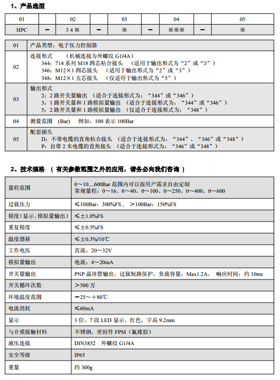 HPC-348-5-250-P,HPC-348-5-400-P,HPC-348-5-600-P,智能電子壓力控制器