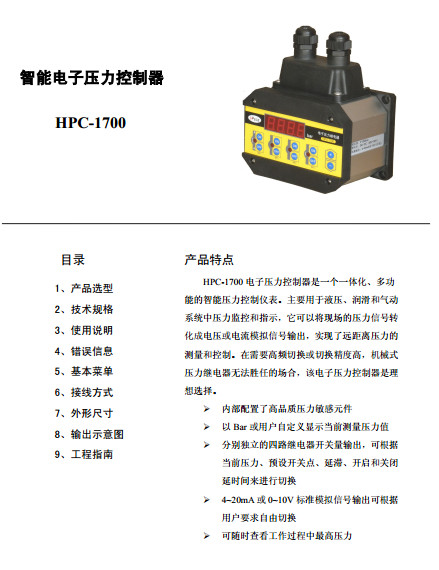 您當前的位置:首頁 » 供應產品 » HPC-1700-16,HCP-1700-40,HCP-1700-100,HCP-1700-250,HCP-1700-400,HCP-1700-600智能電子壓力控制器