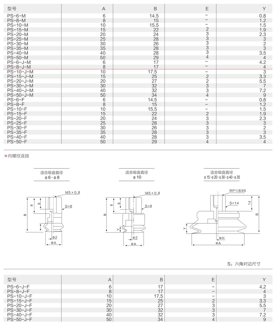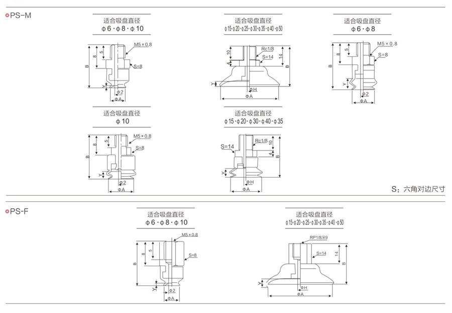 PS-6-M,PS-8-M,PS-10-M,PS-15-M,PS-20-M,PS-25-M,PS-30-M,PS系列吸盤附接頭