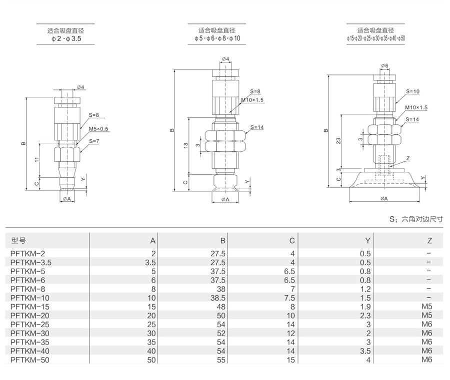 PFTKM-2-N,PFTKM-2-S,PFTKM-2-NE,PFTKM-2-SE,PFTKM/PFYKM系列標(biāo)準(zhǔn)吸盤固定金屬底座,快速接管型
