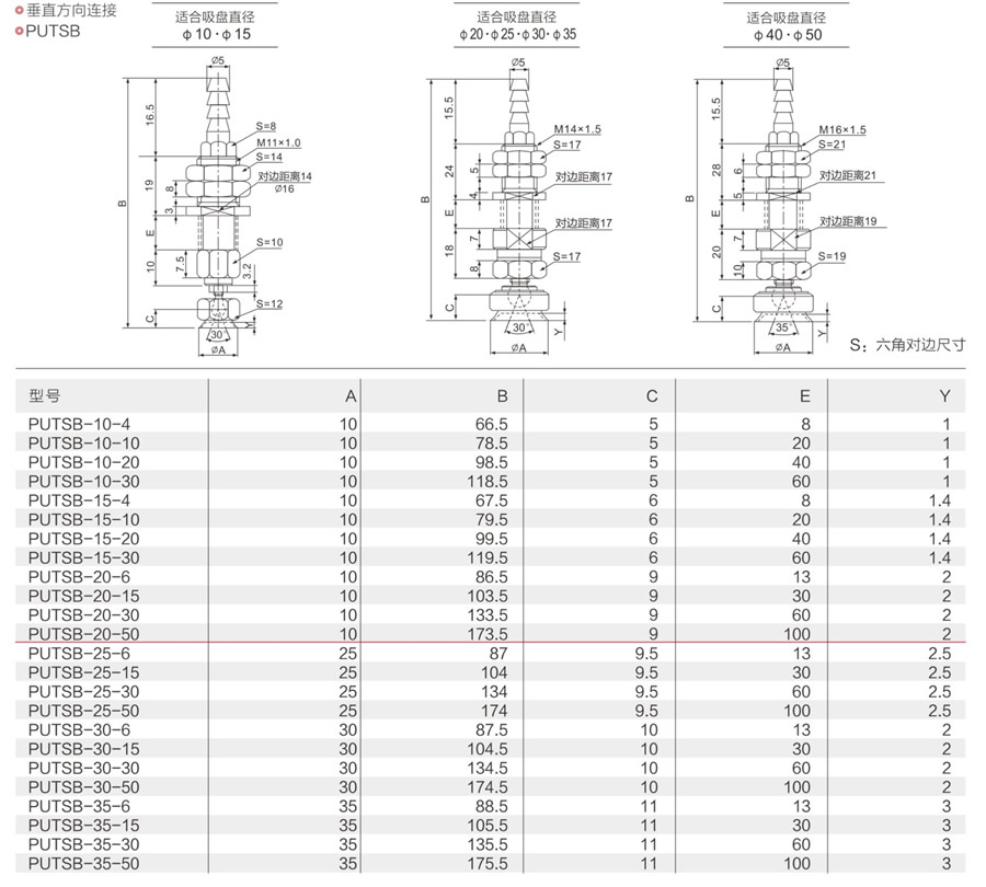 PUTSB-10-4,PUTSB-10-10,PUTSB-10-20,PUTSB-10-30,PUTSB/PUYSB系列真空吸盤