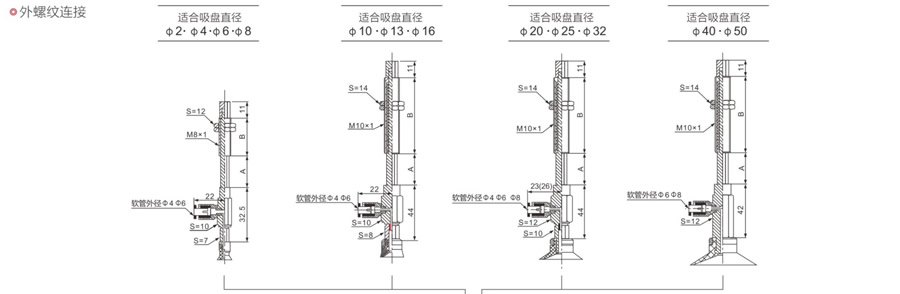 | 記號 | 軟管/外螺紋 | φ2~φ8 | φ10~φ16 | φ20~φ32 | φ40~φ50 |