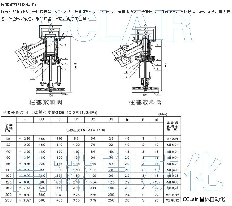 HGU45H-6,HGU45H-10,HGU45H-16,HGU45H-25,HGU45H-40,HGU45H-64,柱塞式放料閥