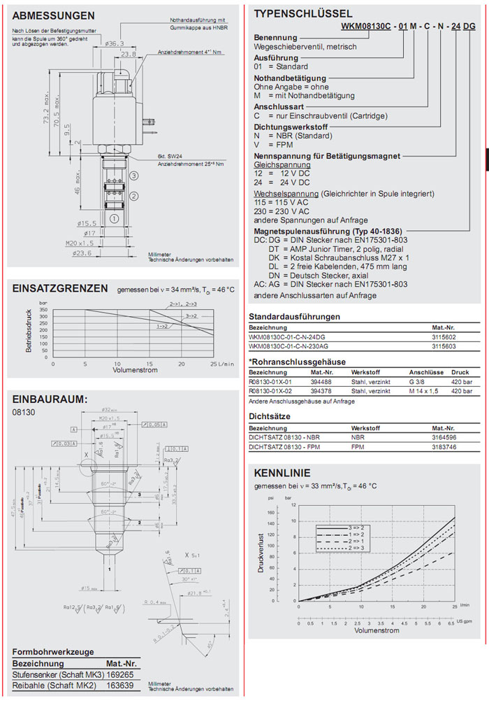 WKM08130C-01-C-N-24DG,WKM08130C-01-C-N-230AG,HYDAC二位三通方向滑閥