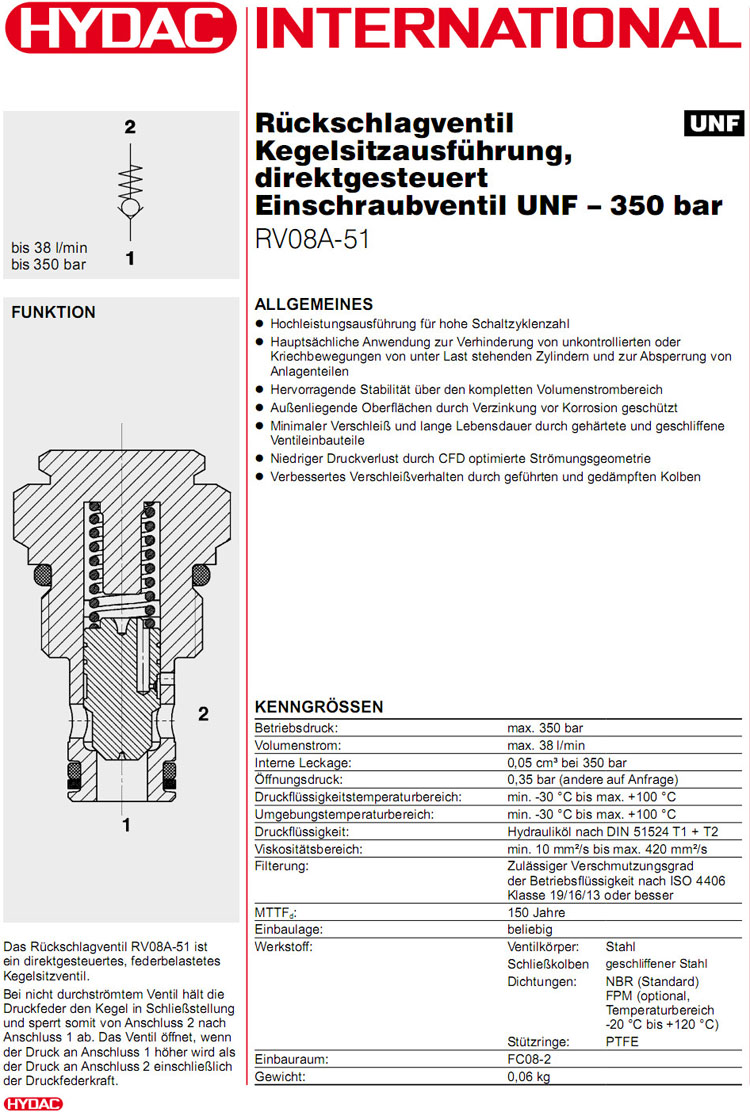 RV08A-51-C-N-05,RV08A-51-C-N-70,HYDAC止回閥