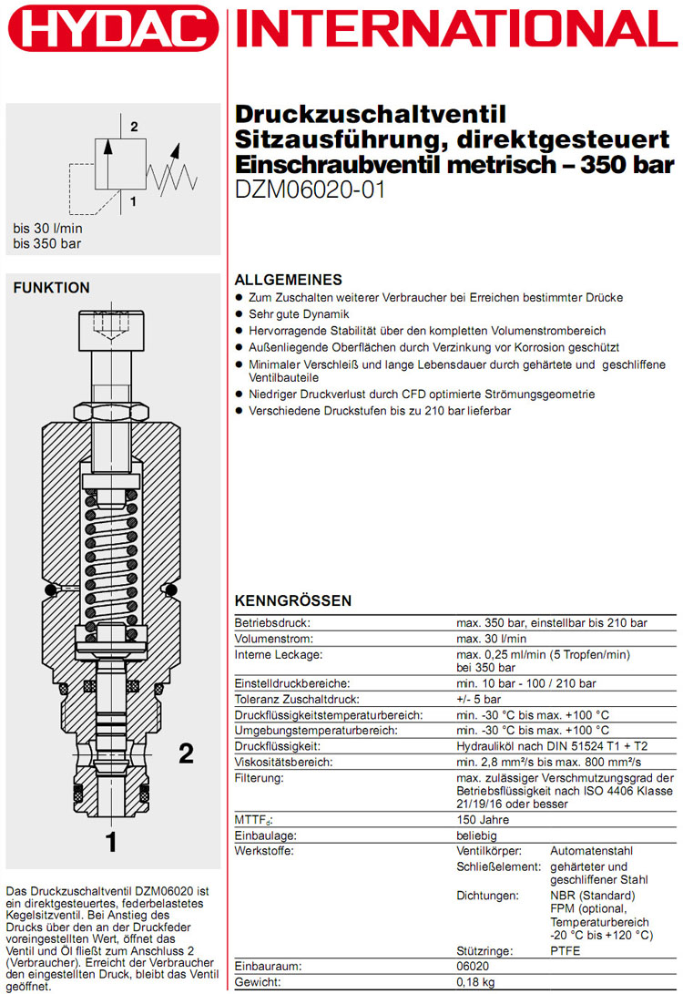 首頁 > 產(chǎn)品&解決方案 > DZM06020-01-C-N-100V,DZM06020-01-C-N-210V,HYDAC壓力順序閥