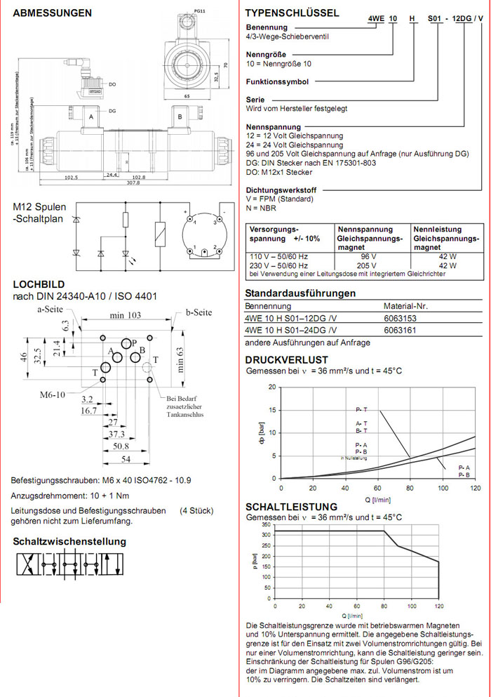 4WE10HS01-12DG/V,4WE10HS01-24DG/V,HYDAC電磁4/3方向滑閥