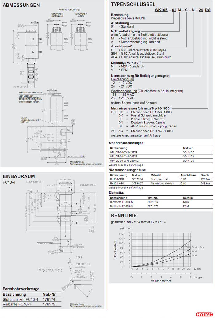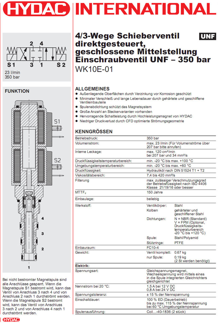 WK10E-01-C-N-12DG,WK10E-01-C-N-24DG,WK10E-01-C-N-230AG,HYDAC電磁4/3方向滑閥