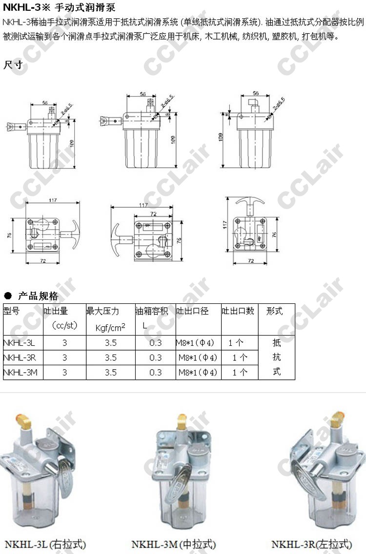 詳細(xì)信息 NKHL-3L,NKHL-3R,NKHL-3M,手動式潤滑泵
