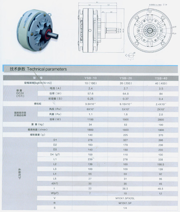 YSB-10,YSB-20,YSB-40,磁粉制動器