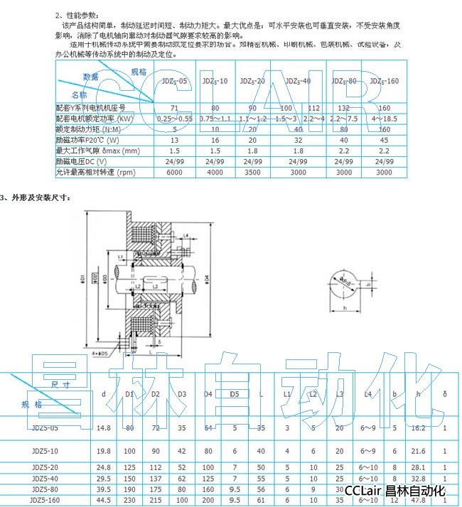 詳細信息 JDZ5-05,JDZ5-10,JDZ5-20,JDZ5-40,JDZ5-80,JDZ5-160,單片制動器