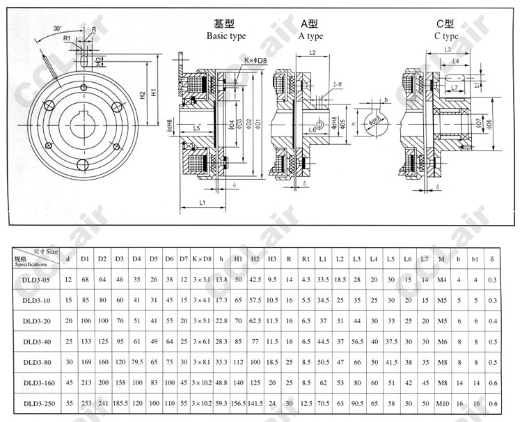 DLD3-5,DLD3-10,DLD3-20,DLD3-40,DLD3-50,DLD3-80,DLD3-160,DLD3-250,電磁離合器(基型,A型,C型)