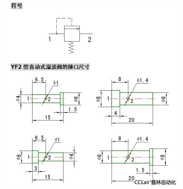 YF2、YF5-KT型直動(dòng)式溢流閥是一種壓力控制閥,其作用主要是防止系統(tǒng)過(guò)載,保護(hù)油泵和油路系統(tǒng)的安全及油路系統(tǒng)的壓力恒定。