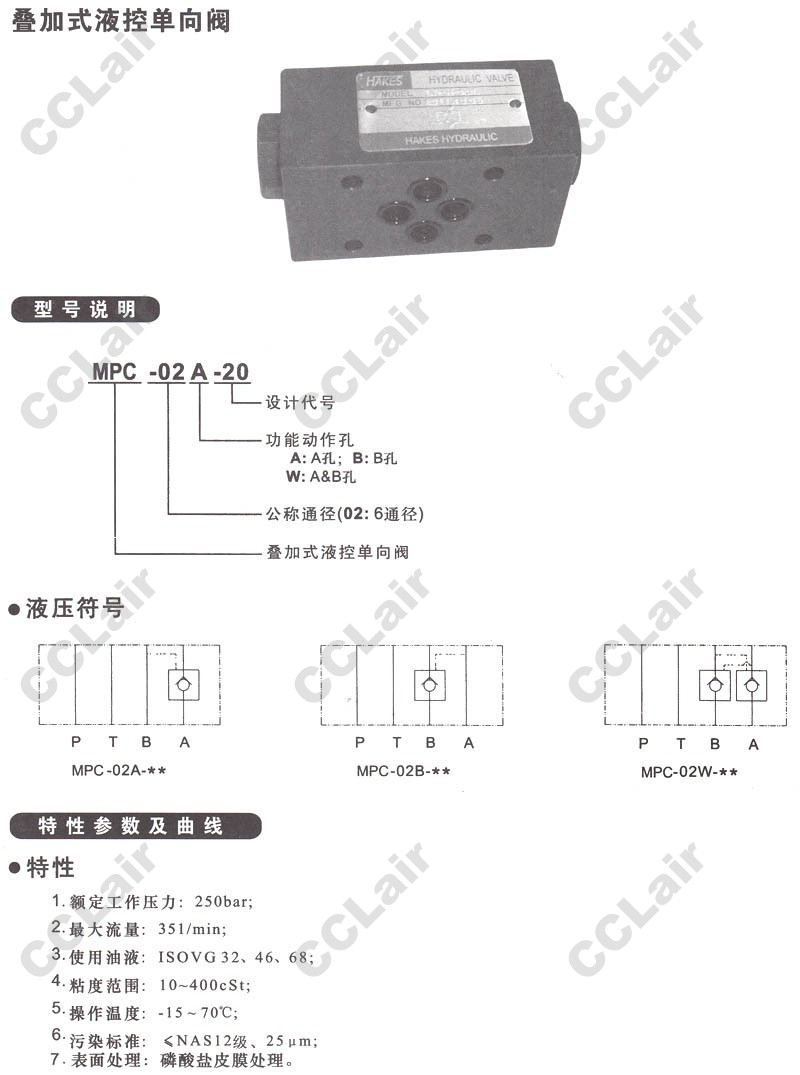 詳細(xì)信息 MPC-02A-20,MPC-02B-20,MPC-02W-20,疊加式液控單向閥