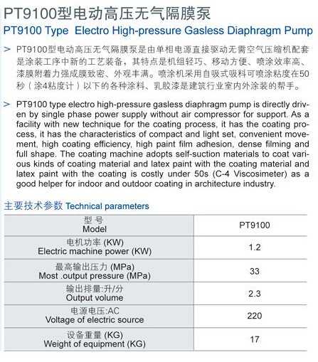 詳細(xì)信息 PT9100,電動(dòng)高壓無(wú)氣隔膜泵