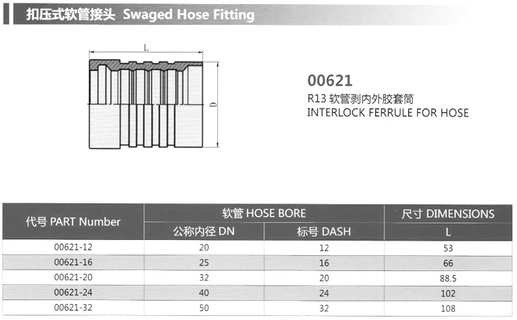 00621-12,00621-16,00621-20,00621-24,00621-32,扣壓式軟管接頭