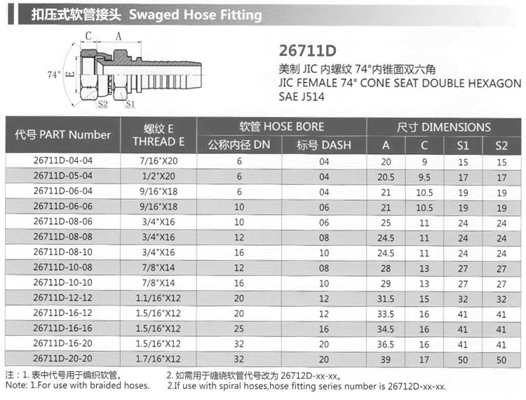 26711D-04-04,26711D-05-04,26711D-06-04,26711D-16-20,26711D-20-20,扣壓式軟管接頭