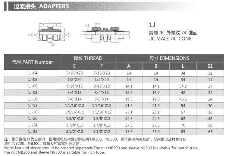 詳細信息 1J-04,1J-05,1J-06,1J-08,1J-10,1J-12,1J-16,1J-20,1J-24,1J-32,過渡接頭