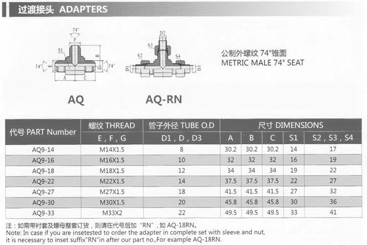 詳細信息 AQ9-14,AQ9-16,AQ9-18,AQ9-22,AQ9-27,AQ9-30,AQ9-33,過渡接頭
