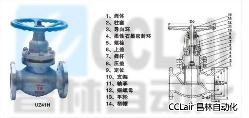 柱塞閘閥是由閥體、閥蓋、閥桿、柱塞、導(dǎo)向套、密封環(huán)、手輪等零件組成 (如圖)。當(dāng)手輪旋轉(zhuǎn)時(shí),通過閥桿帶動(dòng)柱塞在導(dǎo)向套中上、下往復(fù)運(yùn)動(dòng),使柱塞端部斜錐面與閥座面完成閥門的開啟與關(guān)閉功能。