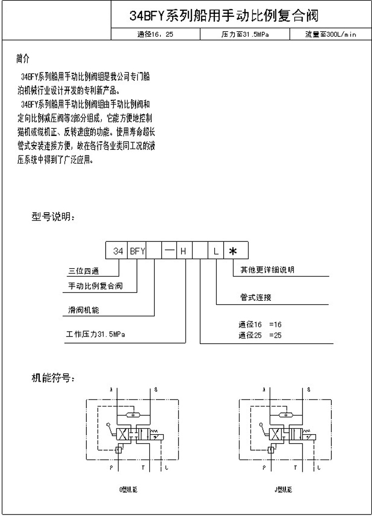 34BFYO-H16L,34BFYO-H25L,34BFYJ-H16L,34BFYJ-H25L,船用手動比例復(fù)合閥