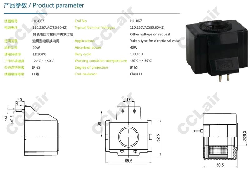 詳細(xì)信息 HL-061,HL-062,HL-063,HL-064,HL-065,HL-066,HL-067,HL-068,HL-069,HL-070,HL-071,HL-072,方向閥用電磁鐵線圈
