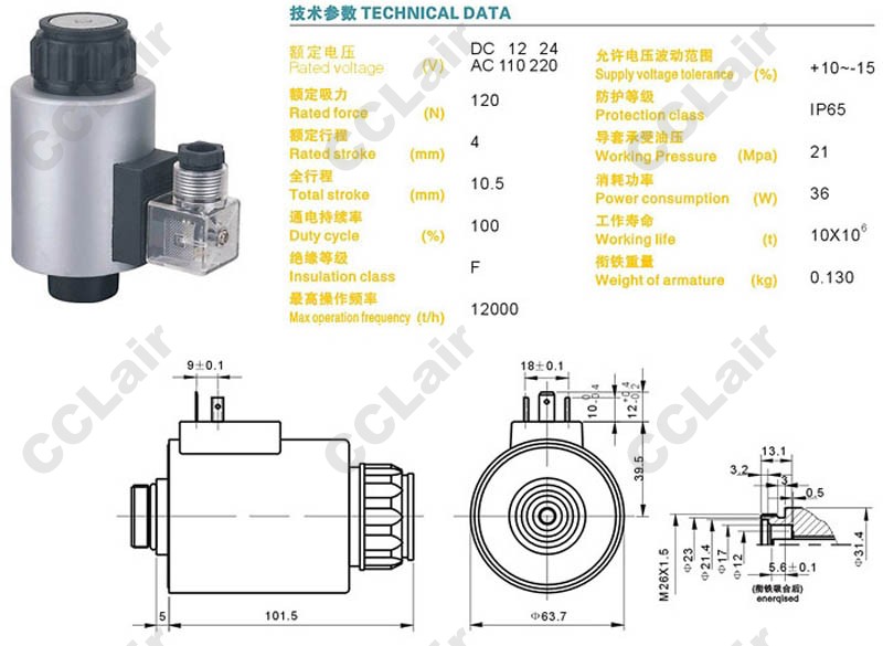 型號: MFZ8-120YC,MFB8-120YC,方向閥用電磁鐵