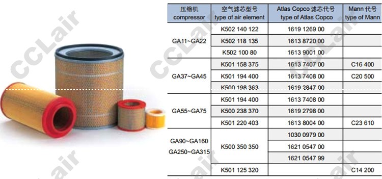 詳細信息 K502140122,K502118135,K50210080,K501158375,K501194400,K500198363,K501194400,K500238370,壓縮機空濾器