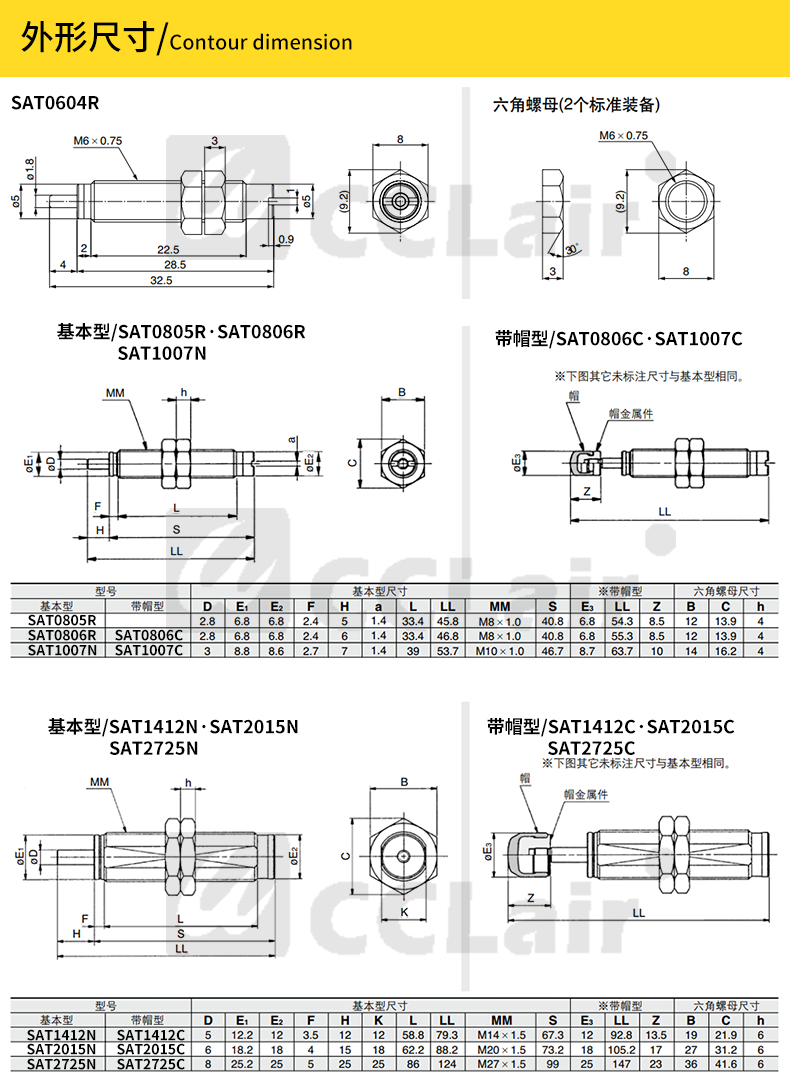 詳細(xì)信息 SAT-0806C,SAT-1007C,SAT-1210C,SAT-1412C,SAT-2015C,SAT-2525C,SAT-2725C,液壓緩沖器,CHELIC氣立可型,STA帶緩沖頭