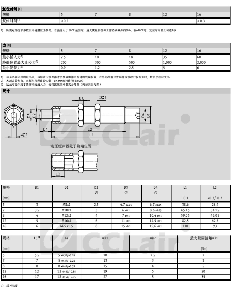 YSR4-4-C,YSR8-8-D,YSR5-5-C,YSR12-12-D,YSR7-5-C,YSR16-20-D,油壓緩沖器YSR