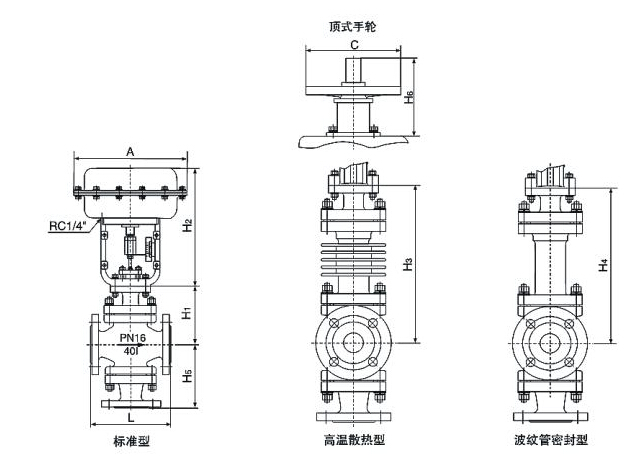 標(biāo)準(zhǔn)型-17~+230℃、散熱型+230~+450℃、波紋管密封型-40~+350℃