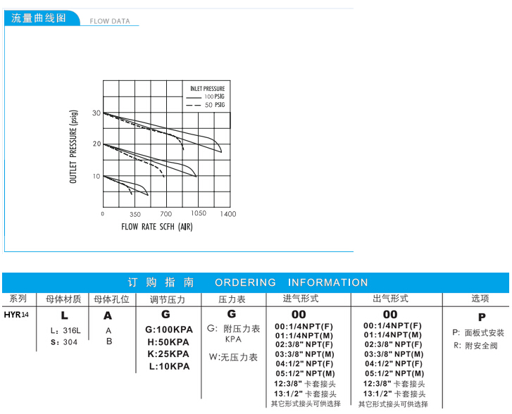 母體螺紋:進(jìn)出氣接口1/2" NPT(F),