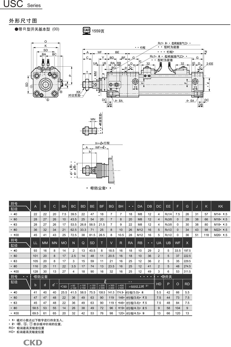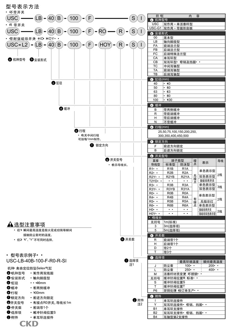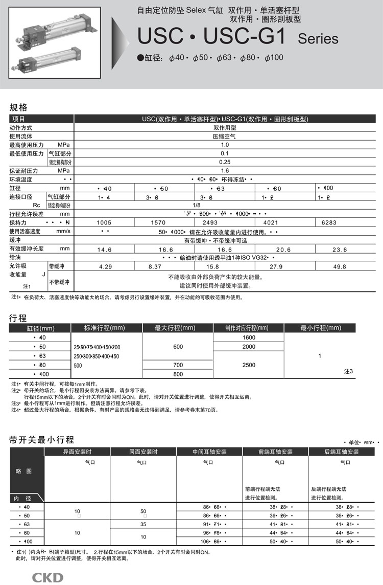 USC-00-40B,USC-L2-00-40B,USC-G1-00-40B,USC-00-50B,USC-G1-TB-100B,CKD自由定位防墜Selex氣缸