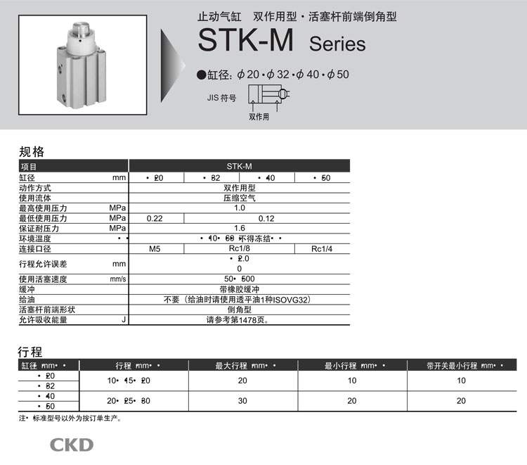 STK-M-20-10,STK-M-32-10,STK-M-40-20,STK-M-50-20,STK-M-20-15,STK-M-40-25,CKD止動氣缸