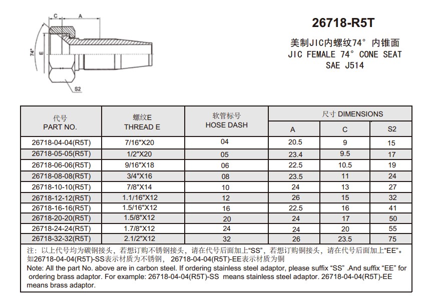 型號: 26718-04-04(R5T),26718-05-05(R5T),26718-06-06(R5T),26718-08-08(R5T),26718-10-10(R5T),