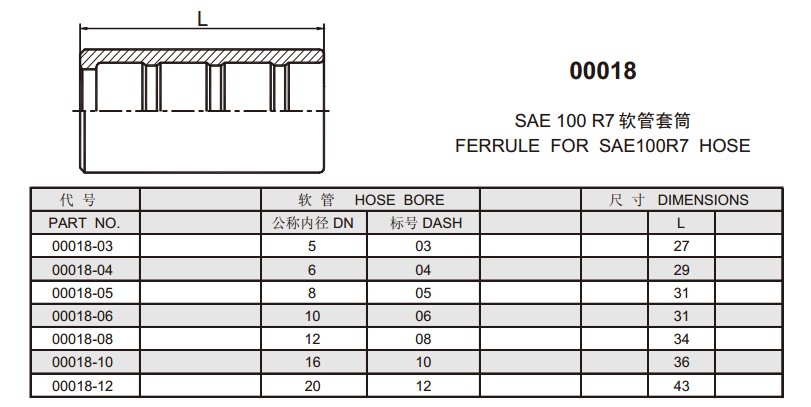 詳細信息 00018-03,00018-04,00018-05,00018-06,00018-08,00018-10,00018-12,扣壓式軟管接頭