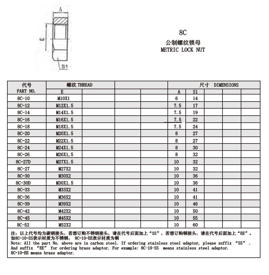 8C-10,8C-12,8C-14,8C-16,8C-18,8C-20,8C-22,8C-24,8C-26,8C-27D,8C-27,8C-30,8C-30D,公制螺紋鎖母接頭