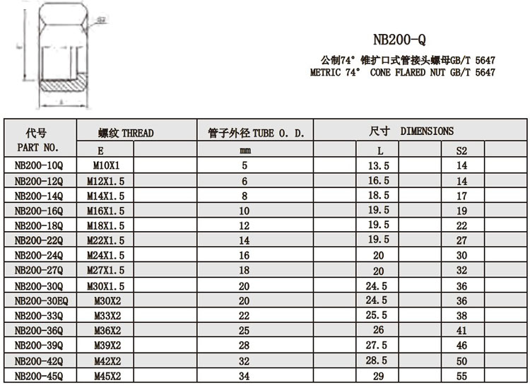 詳細(xì)信息 NB500-10Q,NB500-12Q,NB500-14Q,NB500-16Q,NB500-18Q,NB500-22Q,NB500-24Q,NB500-27Q,錐擴(kuò)口式管接頭
