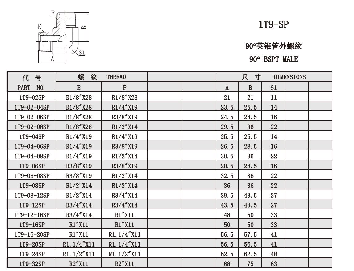 1T9-02SP,1T9-04SP,1T9-06SP,1T9-08SP,1T9-12SP,1T9-16SP,1T9-20SP,1T9-24SP,1T9-32SP,內螺紋接頭