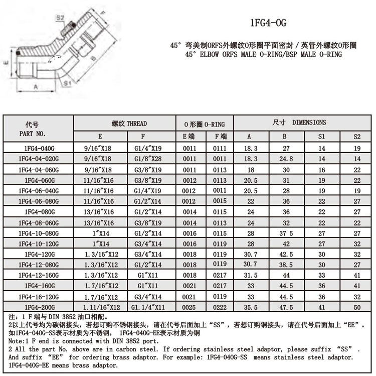 詳細信息 1FG4-040G,1FG4-060G,1FG4-080G,1FG4-120G,1FG4-160G,1FG4-200G,美螺紋O形圈密封接頭